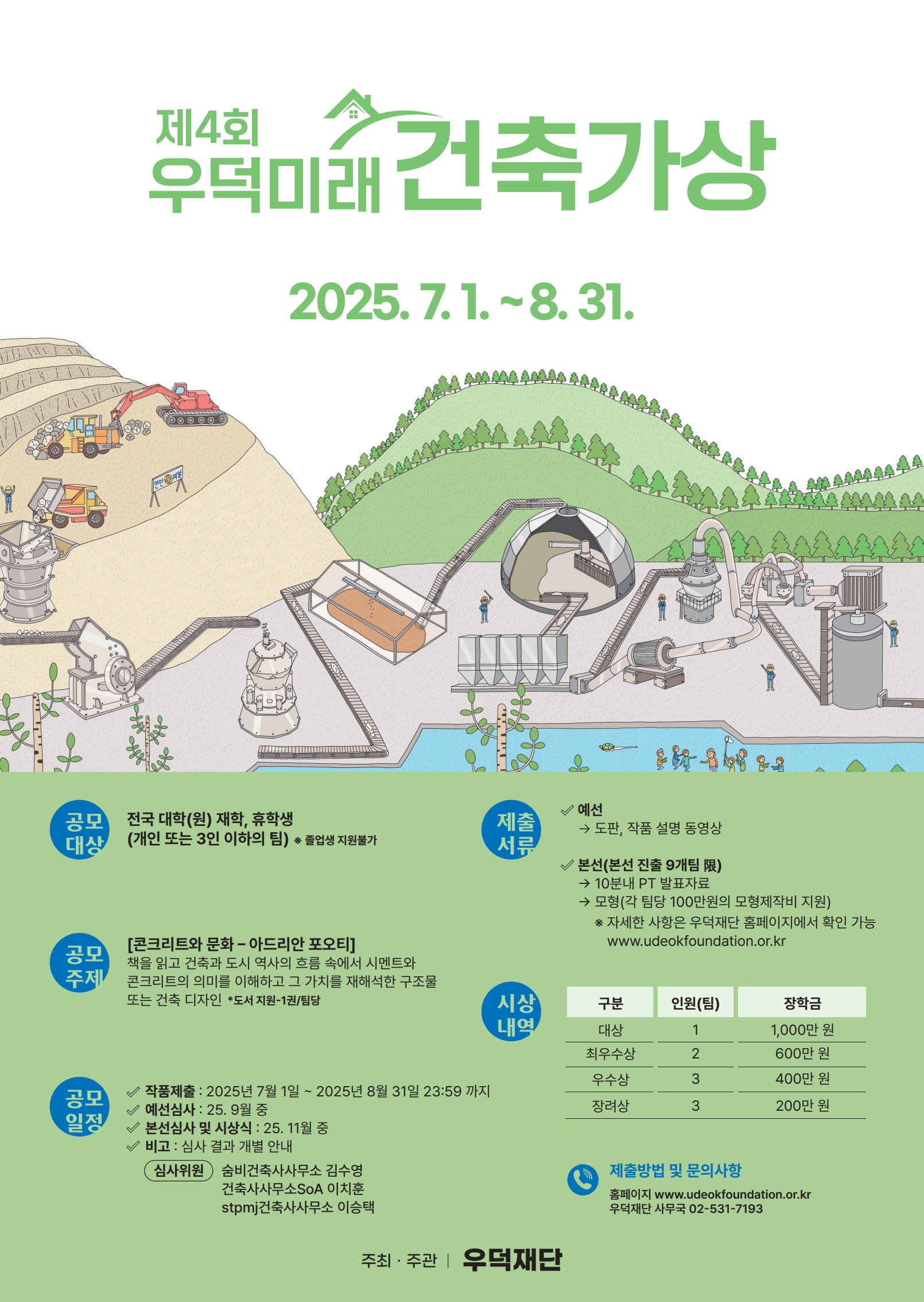 [공모전] 제4회 우덕미래건축가상 공모전 개최(7월 1일부터 접수 / 8월 31일까지 진행)