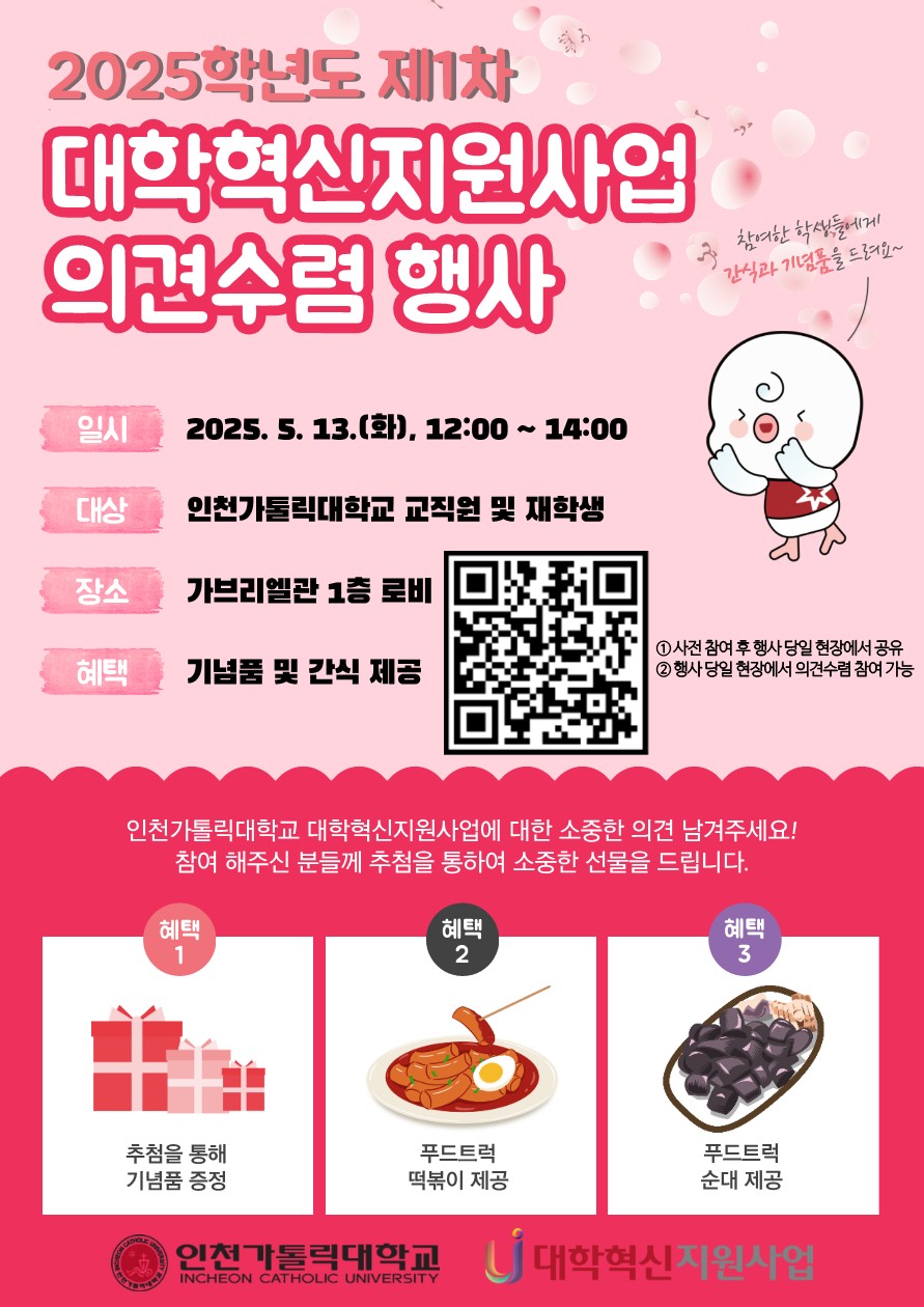 [기타] 2025학년도 제1차 대학혁신지원사업 의견수렴 행사(5월 13일 화, 12:00~14:00)