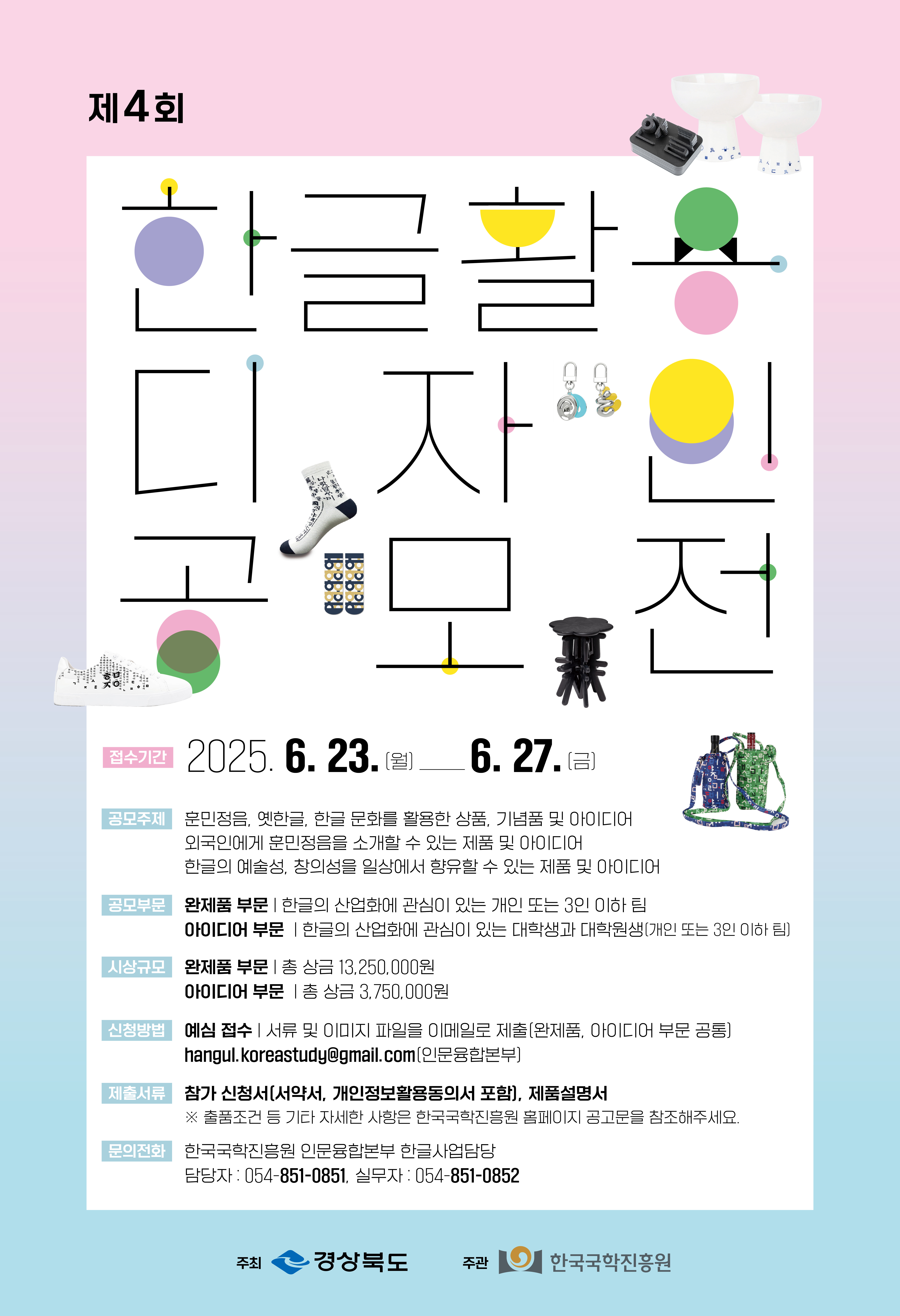 [공모전] 제4회 한글 활용 디자인 공모전(6월 23일(월) ~ 6월 27일(금) / 5일간 접수)